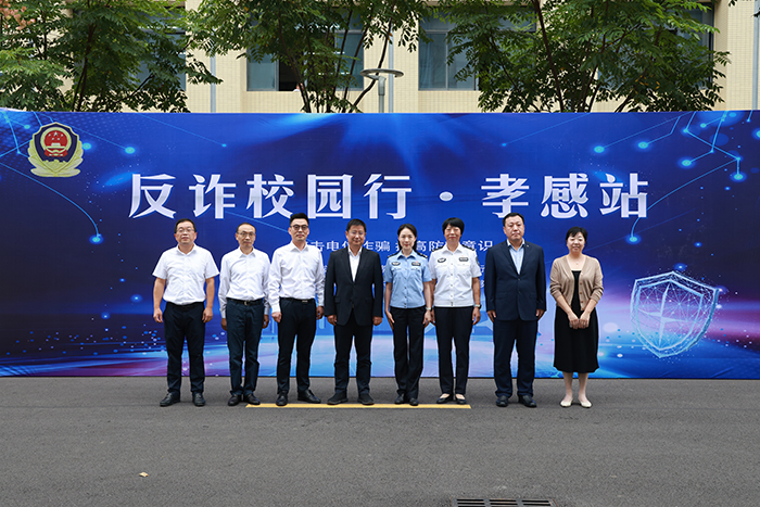 (本网讯 高福平)9月27日,孝感市“反诈校园行·孝感站”宣传启动仪式在我校南校区崇德大礼堂举行。湖北省公安厅反诈中心主任吴春丽、孝感市政府副秘书长艾继武、我校党委副书记、校长郭沙,孝感市公安局、中国人民银行孝感市分行、中国移动孝感分公司、上海浦发银行孝感分行相关领导参加活动。活动由学校党委委员、副校长梅重主持。