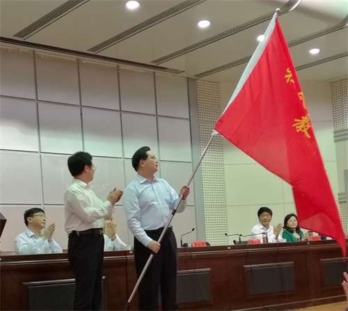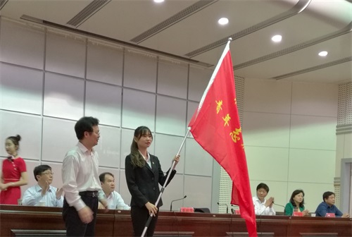 我校机电工程学院2014级沈美同学代表全市社科普及青年志愿者发言。医学院刘秀平博士作为我校社科普及教授团代表、护理学院2015级学生李思慧作为社科普及青年志愿者代表分别接受社科普及教授团团旗和志愿服务队队旗。