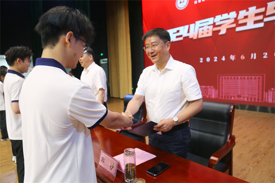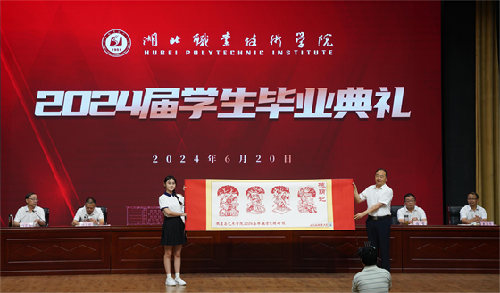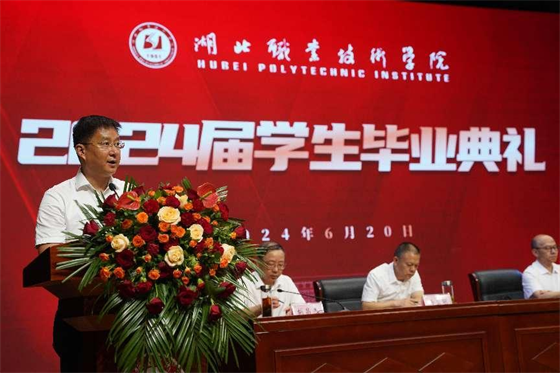 典礼伊始,全体起立,升国旗,奏唱国歌。学校党委委员、副校长梅重宣读了《湖北职业技术学院关于表彰优秀毕业生的决定》。全体校领导为2024届优秀毕业生代表颁发荣誉证书、为各学院毕业生代表颁发毕业证书。