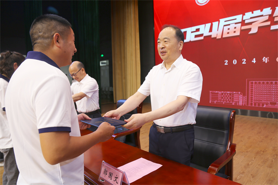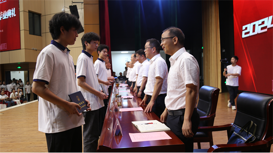 校长郭沙作毕业典礼致辞。他首先代表学校全体教职员工衷心祝福2024届毕业生顺利完成学业,向为同学们成长成才付出辛勤汗水的老师、家长和企业家朋友们致以最衷心的感谢和崇高的敬意。满怀深情的寄语全体毕业生:一要敬过往,云淡风轻;二要惜当下,奋楫逐浪;三要向未来,守正创新,在逐梦路上要将个人的小舟驶向家国的汪洋大海,不负努力、不留遗憾、不畏考验、不啻微芒、造炬成阳,奋力书写为中国式现代挺膺担当的青春篇章。