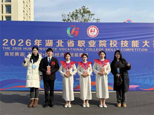 (本网讯 马江浩 李蓓蕾 王峰 邓凤婷 罗艳丽 祝非凡 王亚军)1月11日,2026年湖北省职业院校技能大赛商贸赛道(项)落幕。本次大赛规模大、竞争激烈,来自商贸赛道27所中职学校、49 所高职院校的115支参赛队以及互联网+国际经济与贸易赛项44所高职院校86支参赛队同台竞技,经过三天激烈角逐,我校师生凭借扎实的专业技能、优秀的参赛作品与出色的现场展示,在商贸赛道(项)中成功斩获金奖3项、银奖1项,取得了历史性突破。其中:在商贸赛道中,许飞、方皓翔、李广恩、祖拜代·米尔阿迪力(指导教师:宋巍 张鑫),张诗涵、刘政烽、霍静怡、董陶芳(指导教师:李媛 肖敏晨)两支参赛队获金奖2个;在互联网+国际经济与贸易赛项中获得教师组(宗敏 杨继锐)金奖1个、学生组(唐家成、李洋、汪春禧、吴金涵)银奖1个(指导教师:胡凤 何莹)。