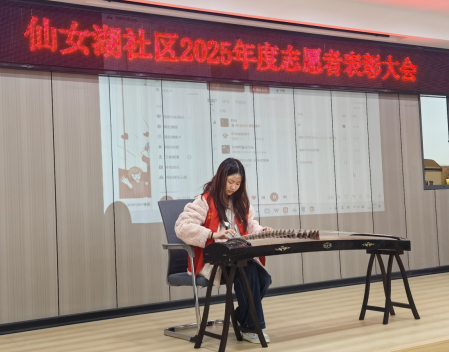志愿者们带来了精心准备的才艺表演,用艺术表达志愿情怀。一曲古筝独奏婉转悠扬,琴弦流转间尽显古典韵味,将现场氛围带入宁静悠远的意境;中阮演奏浑厚质朴,独特的音色与灵动的旋律相得益彰,展现了志愿者们多才多艺的一面。
