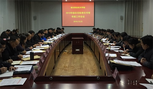 12月22日,学校2015年综合目标责任考核工作会议在行政楼201会议室召开。校领导朱虹、张勇、白梦清、梅重、田寿永,各部门负责人、考核工作专班人员等参加了会议,会议由副校长张勇同志主持。会上,学校职能部门负责人分别对部门综合目标责任书考核、党风廉政建设考核、中层干部聘期表现情况民主测评、工作人员年度考核等进行了介绍。校长朱虹对考核工作提出了要求:一是注重统筹安排,二是把握好考核导向,三是组织从严,四是作风从实。