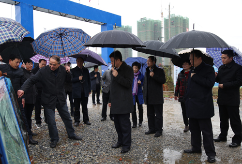 11月24日,孝感市市长滕刚,副市长陈义国、周先来、王芳冒雨莅校调研督查南校区工程建设项目,实地了解南校区工程进展情况。市政府秘书长郭国文,孝南区委书记杨军安,市政府副秘书长李建峰、黄建军、高汉辉,市发改委主任黄修平、 市政府督查室主任汪书清,学校领导蔡诗红、朱虹、张勇等陪同调研。